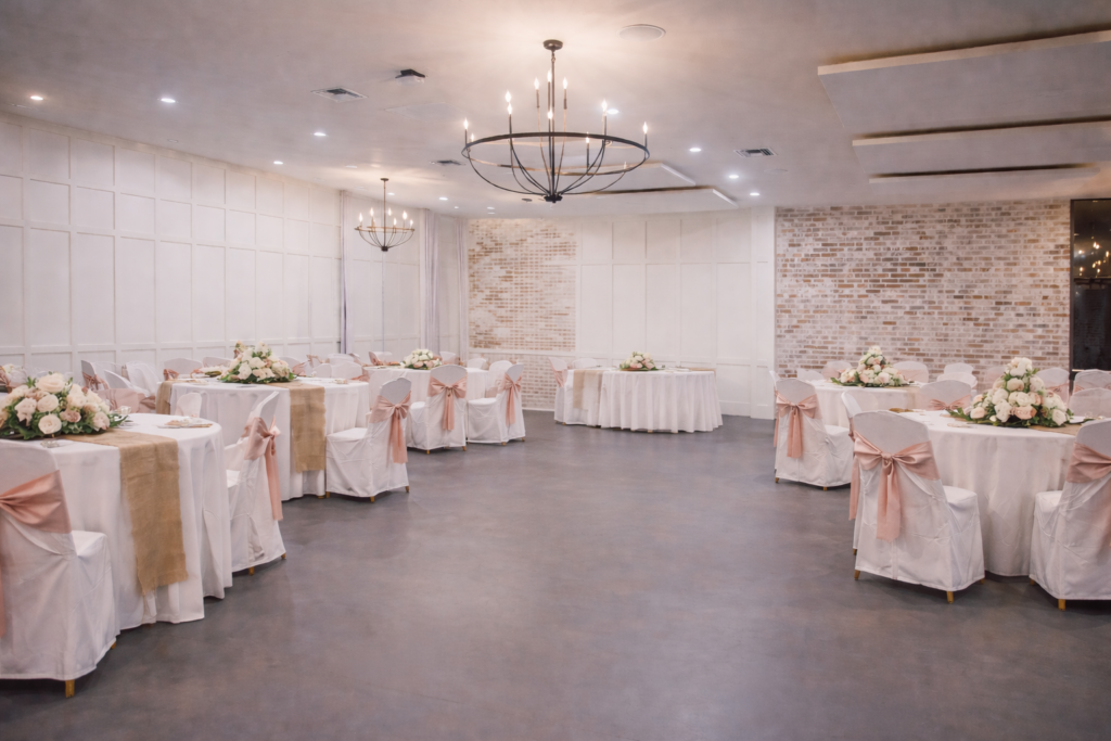 - Tables/chairs/linens including white table clothes, chair covers, sashes.